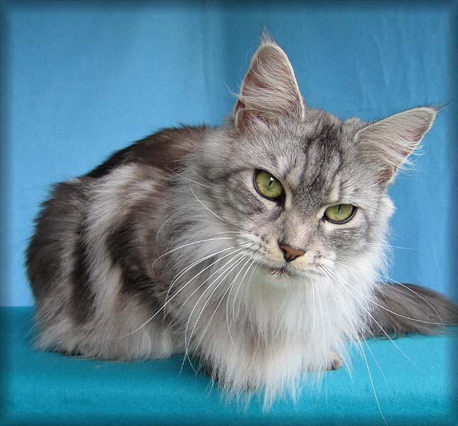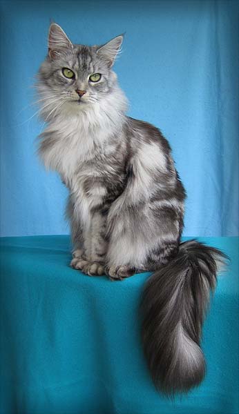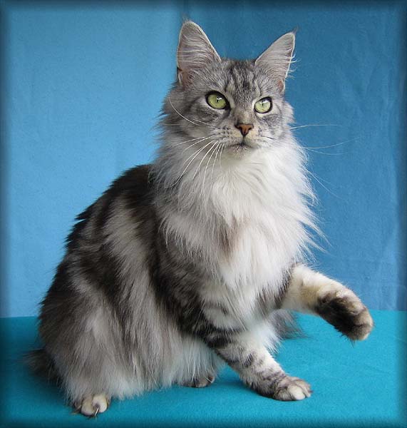 auf, Maine Coon Kater, Chaminda und Hauskatze Daisy.