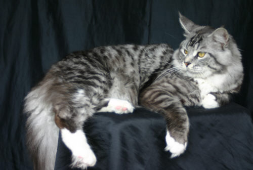 Hallo, mein Name ist "Winnie".Am 25.02.2003 bin ich in Nunspeet(NL) geboren und lebe nun bei Familie Strahl in Voerde. Ich habe mich zu einem stattlichen Kater entwickelt. Am 01.01.2004 bin ich zum ersten Mal Vater geworden. Gleich bei meinen ersten Kitten habe ich bewiesen, daß ich Nonagouti und Verdünnung trage. Leider werden das meine einzigen Kinder bleiben, denn ich habe sehr früh begonnen meine Wohnung mit mit Häufchen und Pfützchen zu markieren. Da dies das harmonische Zusammenleben mit meiner Familie doch sehr störte, wurde ich am 12.10.2004 kastriert.